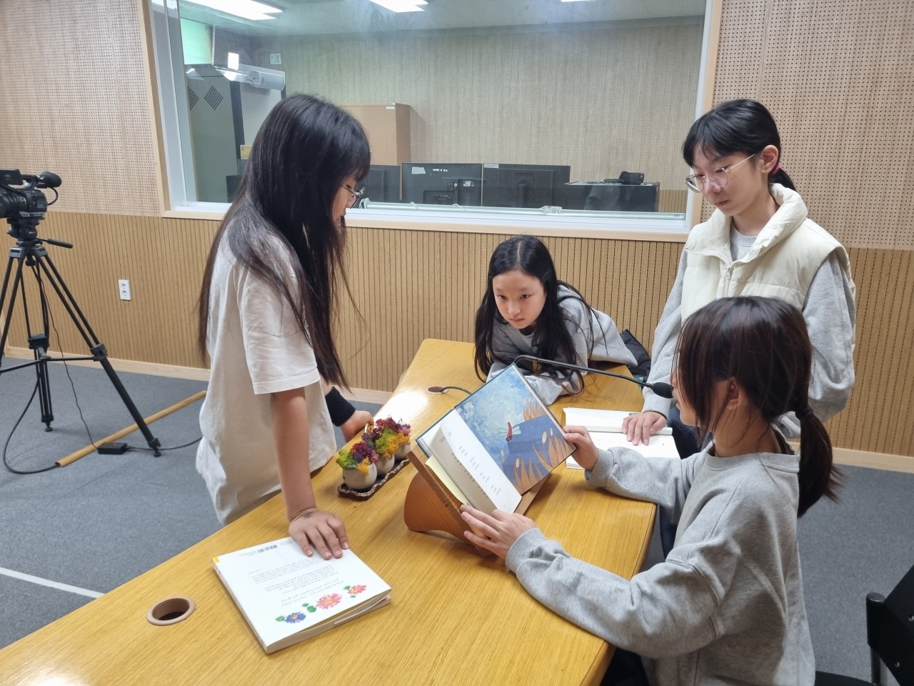매주 낭독할 동시를 골라 연습하고 4명이 1조가 되어 매주 수요일 낭독 녹음.