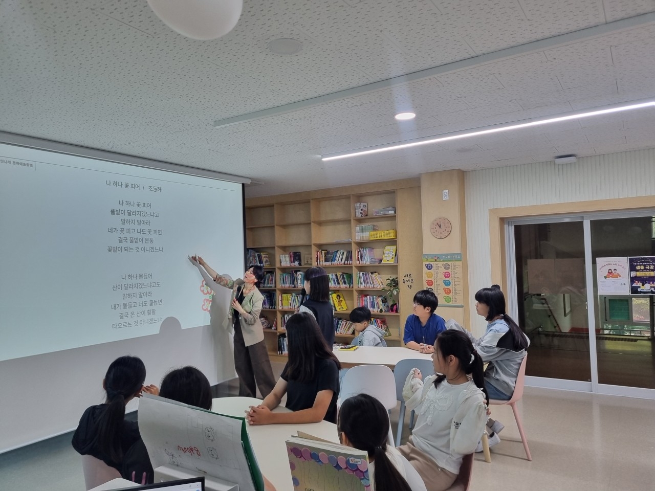 4. 내용: 낭독 전문 강사님을 모시고 시각 장애인에 대한 이해 교육과 동시 낭독 특강 후, 우리반 낭독회를 진행.